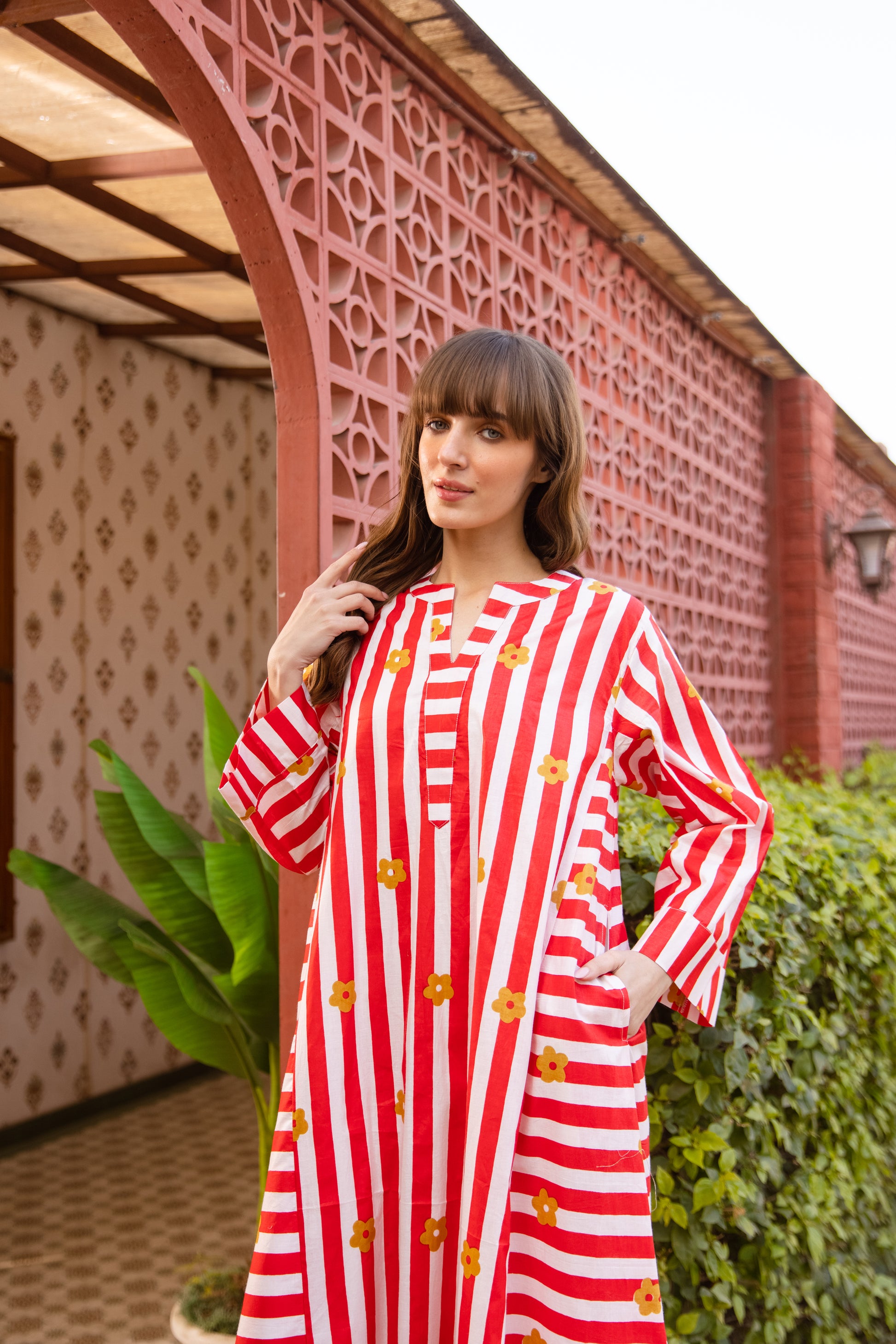 Explore our Hand screen printed dress, made in high quality cotton to elevate your everyday style.