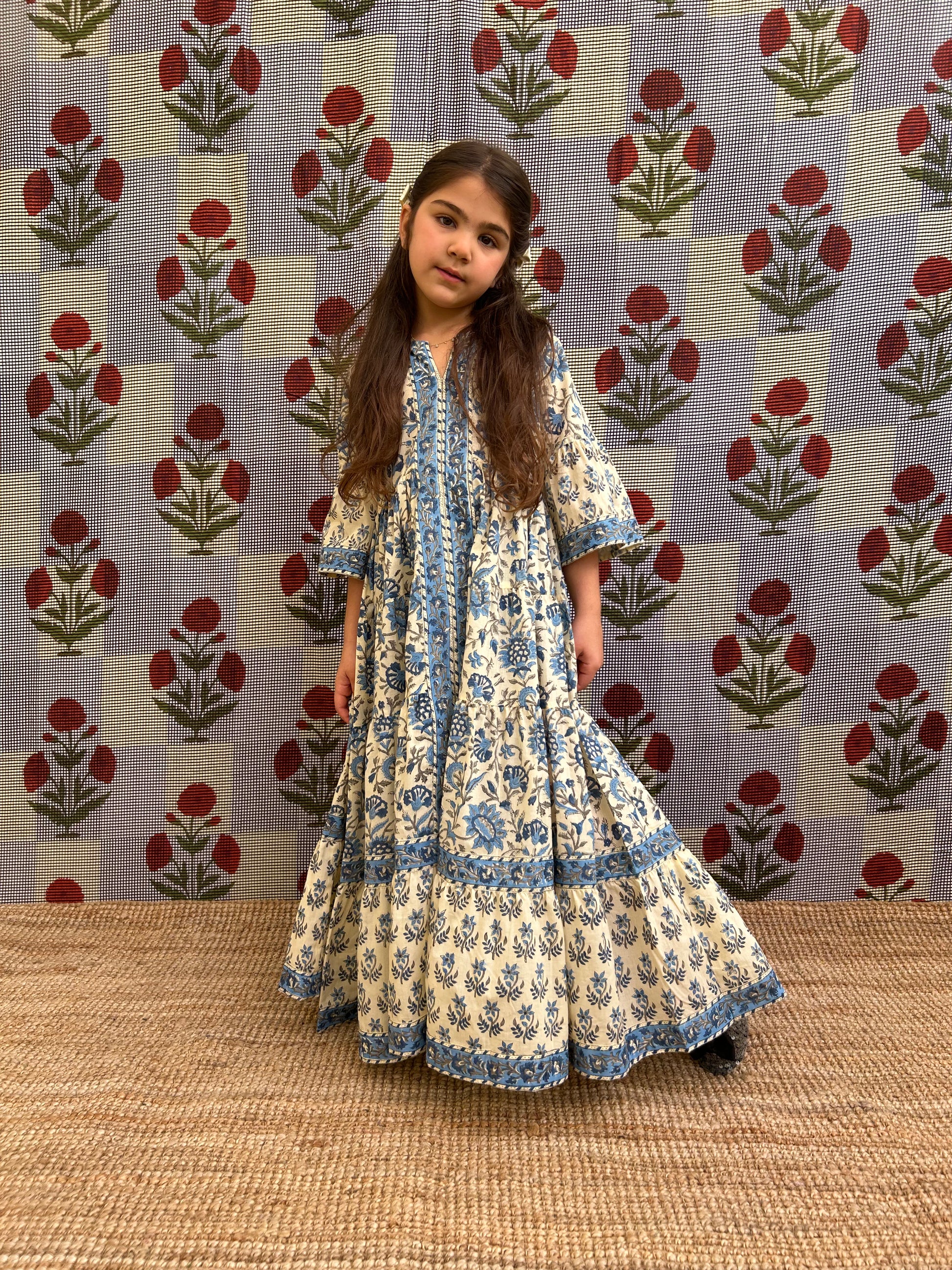 Our Hand block printed kids dress are made out of breathable light weight fabric that are perfect for their easy movement, comfort and play.