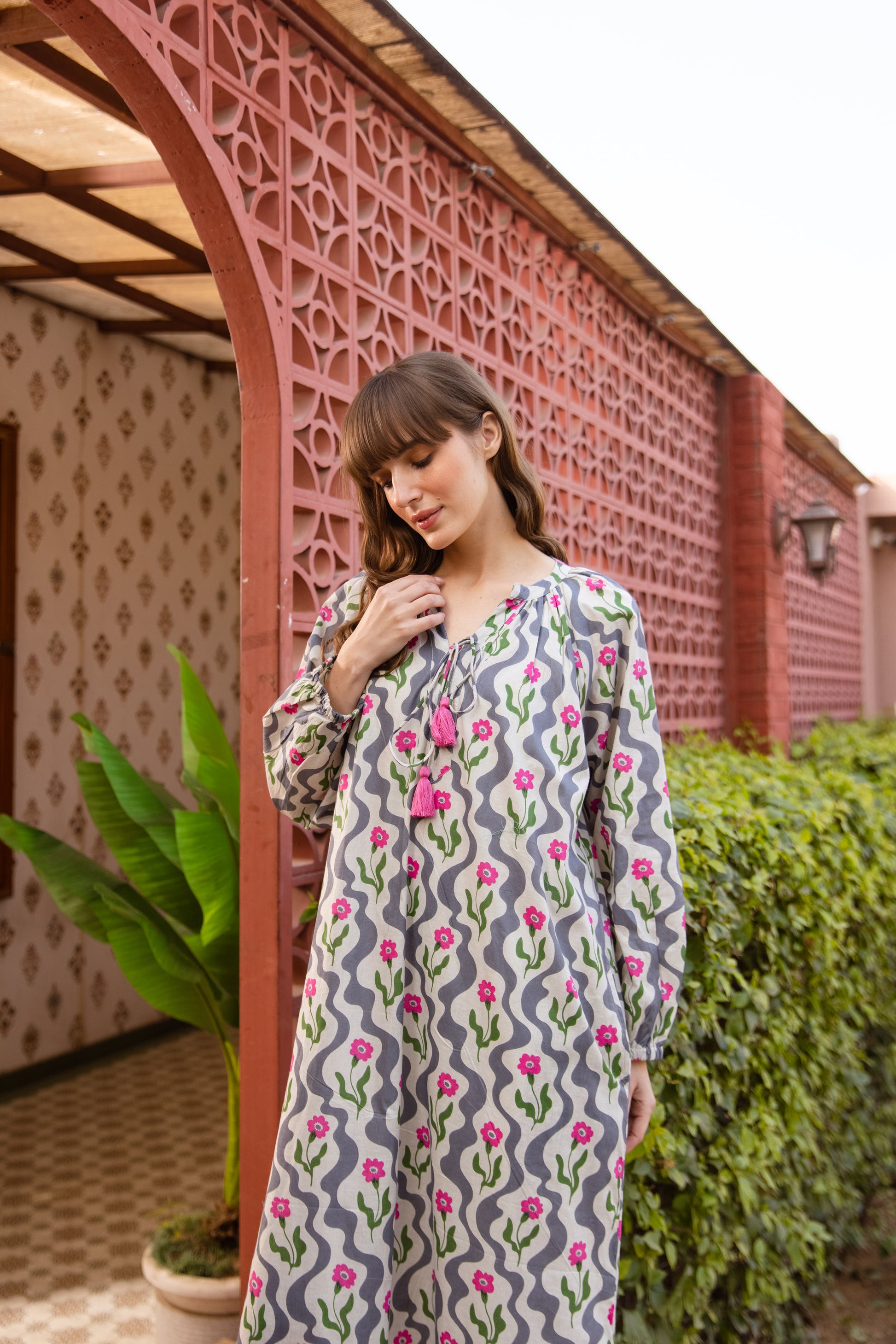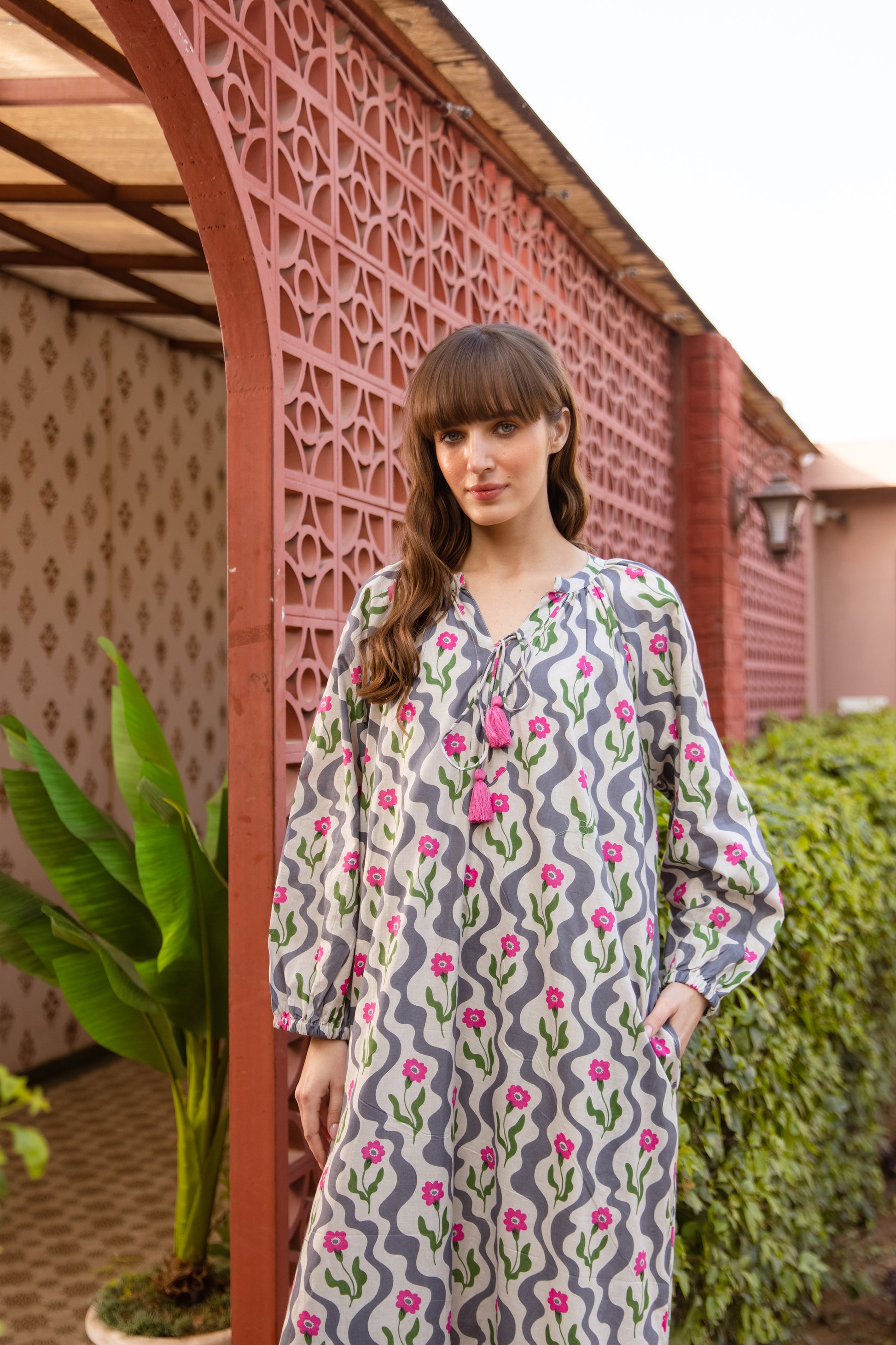 Explore our Hand screen printed dress, made in high quality cotton to elevate your everyday style.