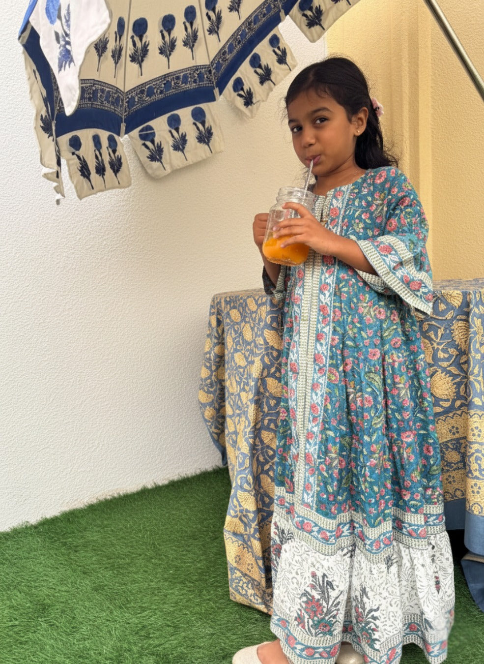 Our Hand block printed kids dress are made out of breathable light weight fabric that are perfect for their easy movement, comfort and play.