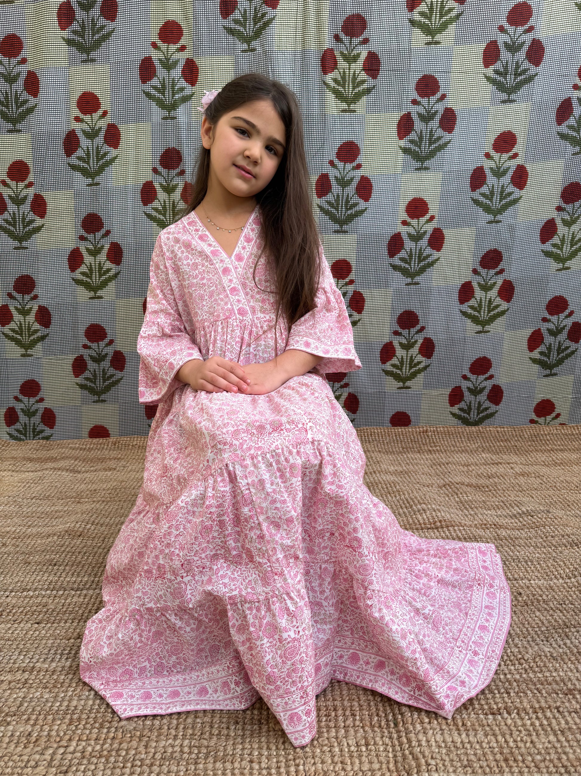 Our Hand block printed kids dress are made out of breathable light weight fabric that are perfect for their easy movement, comfort and play.